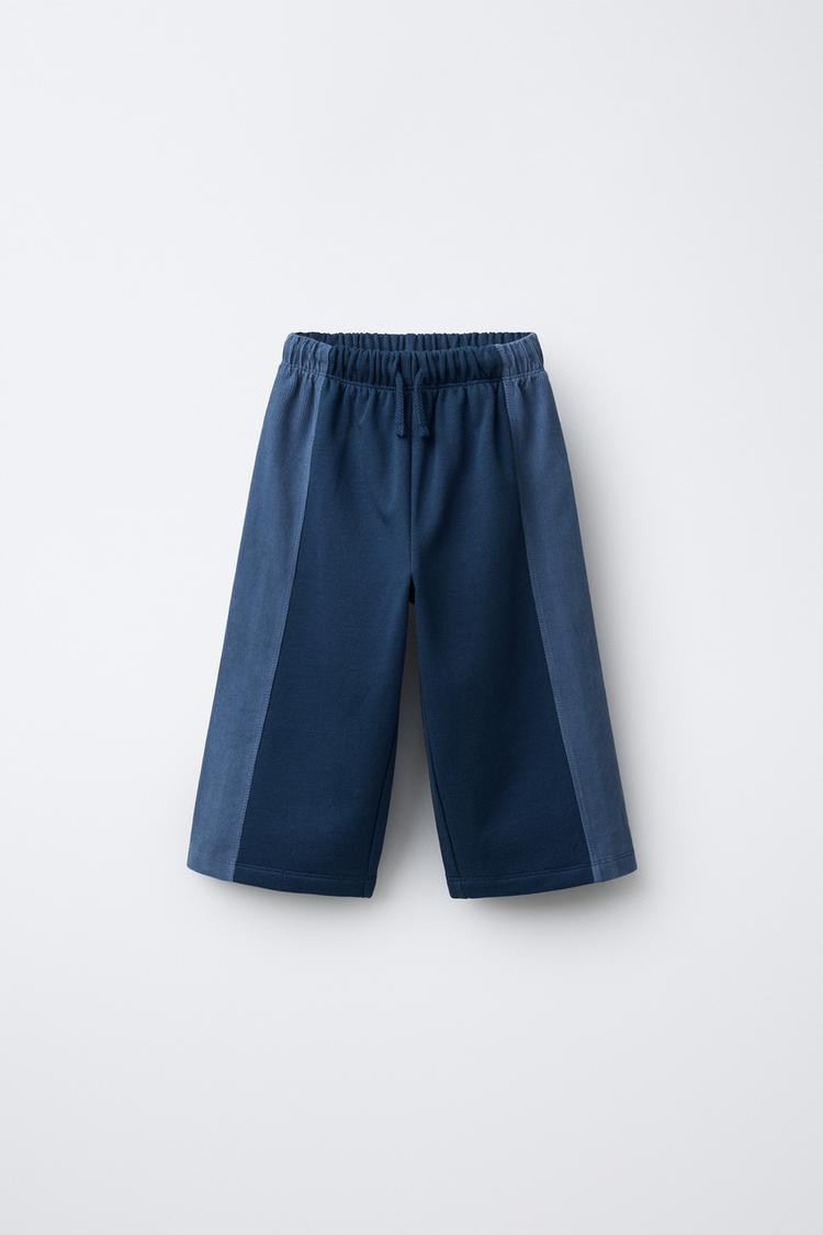 ZARA ПРЯМЫЕ БРЮКИ ИЗ МЯГКОЙ ТКАНИ С БОКОВЫМИ ПОЛОСАМИ ИЗ ВЕЛЬВЕТА, СИНИЙ