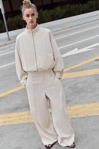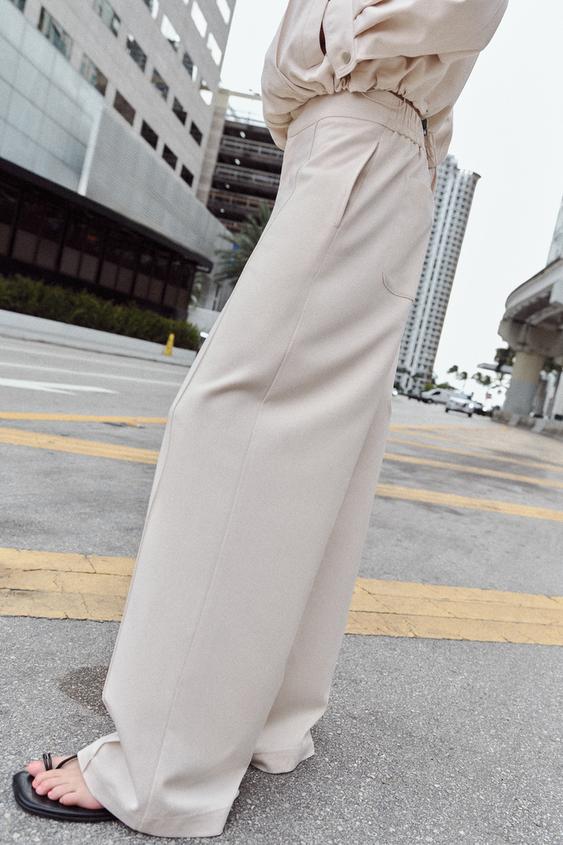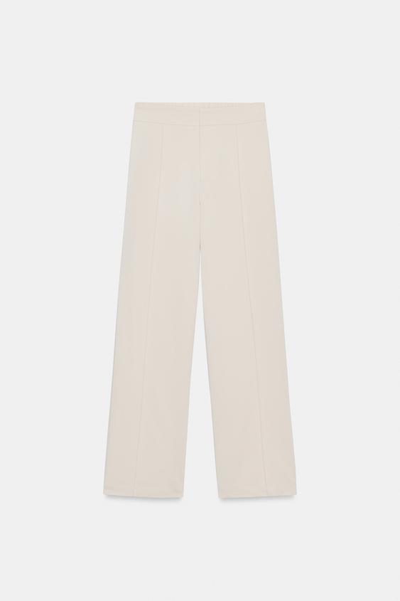 ZARA ПРЯМЫЕ БРЮКИ С ДЕКОРАТИВНОЙ СТРОЧКОЙ, ЭКРЮ