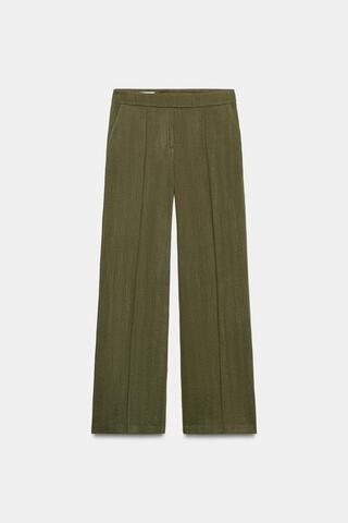 ZARA ПРЯМЫЕ БРЮКИ С ДЕКОРАТИВНОЙ СТРОЧКОЙ, ХАКИ