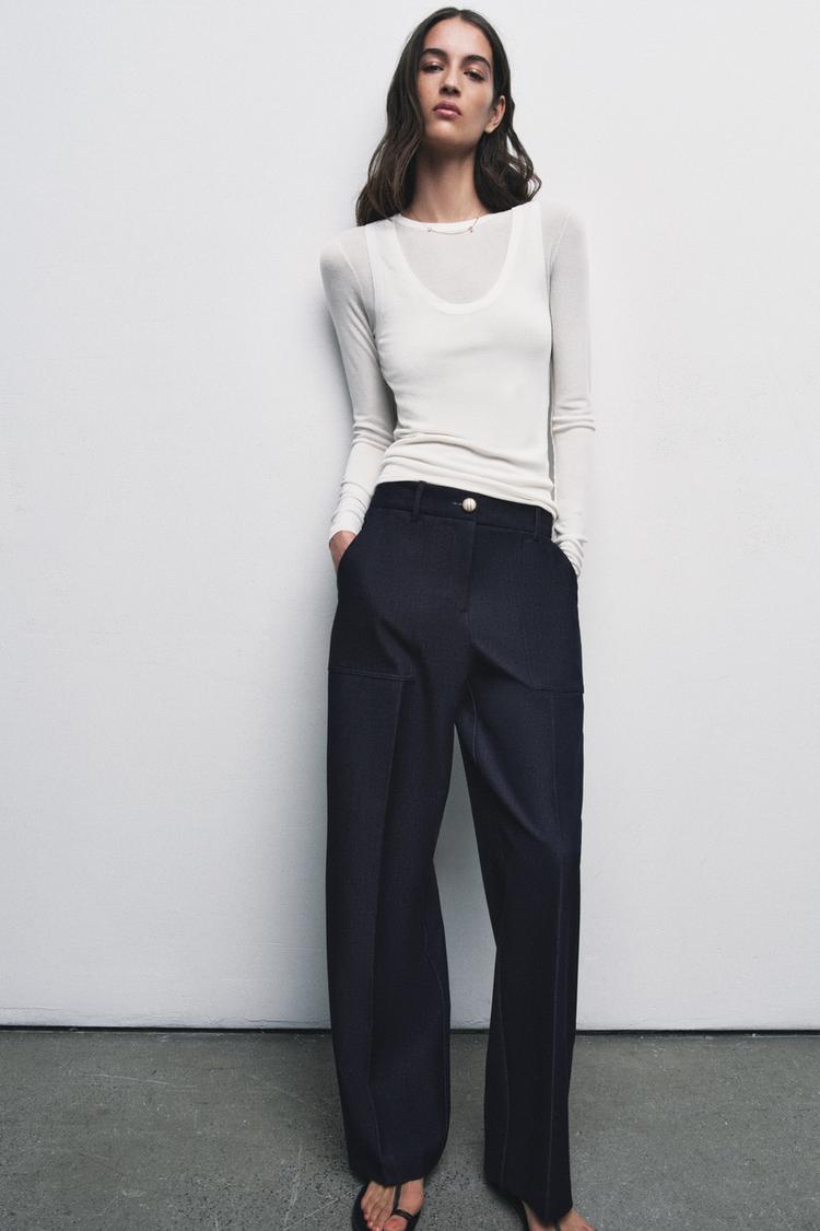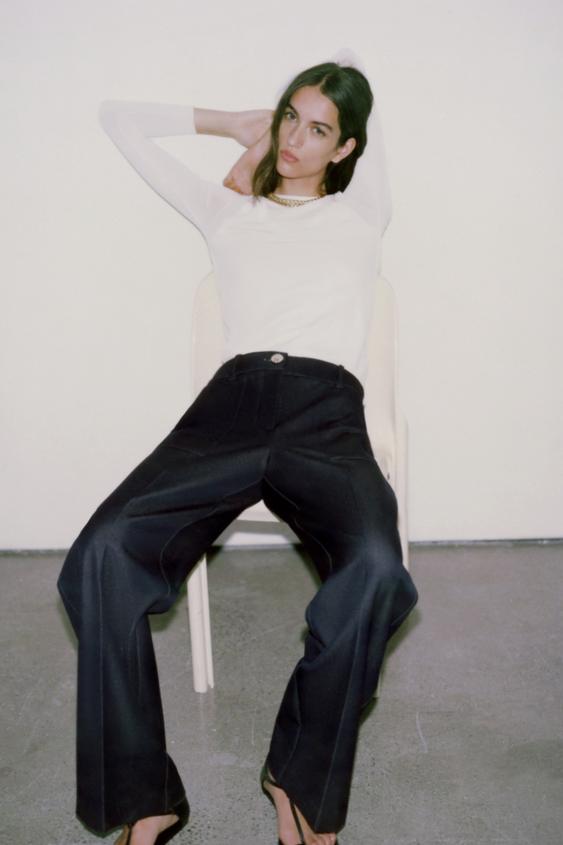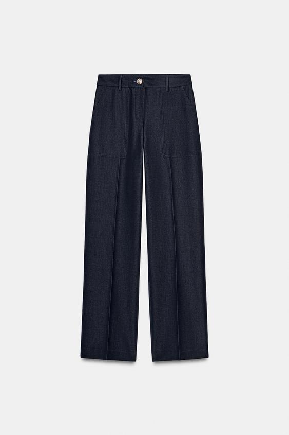 ZARA ПРЯМЫЕ БРЮКИ С ДЕКОРАТИВНОЙ СТРОЧКОЙ, ИНДИГО