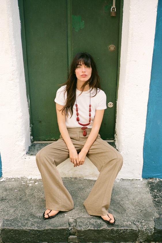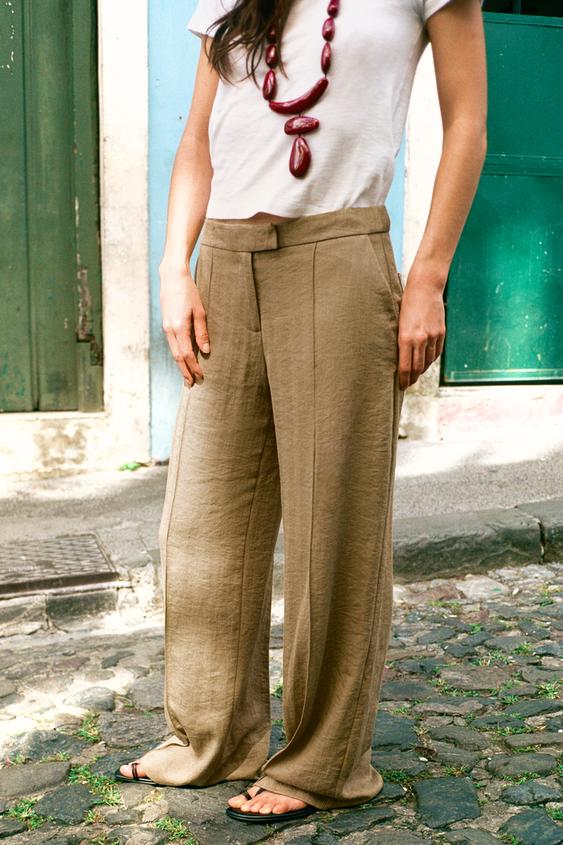 ZARA ПРЯМЫЕ БРЮКИ С ДЕКОРАТИВНОЙ СТРОЧКОЙ, РЫЖЕВАТО-КОРИЧНЕВЫЙ