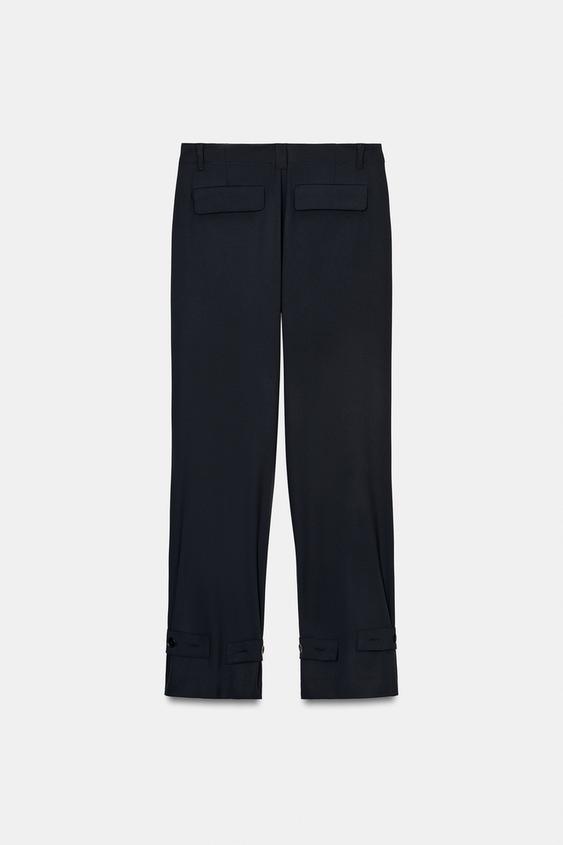 ZARA ПРЯМЫЕ БРЮКИ С ХЛЯСТИКАМИ, МОРСКОЙ ТЕМНО-СИНИЙ
