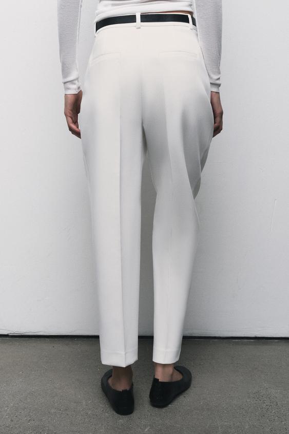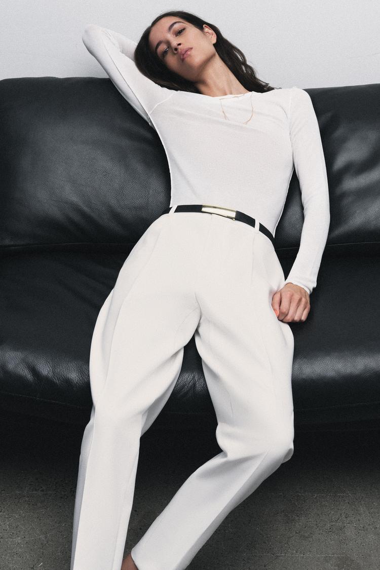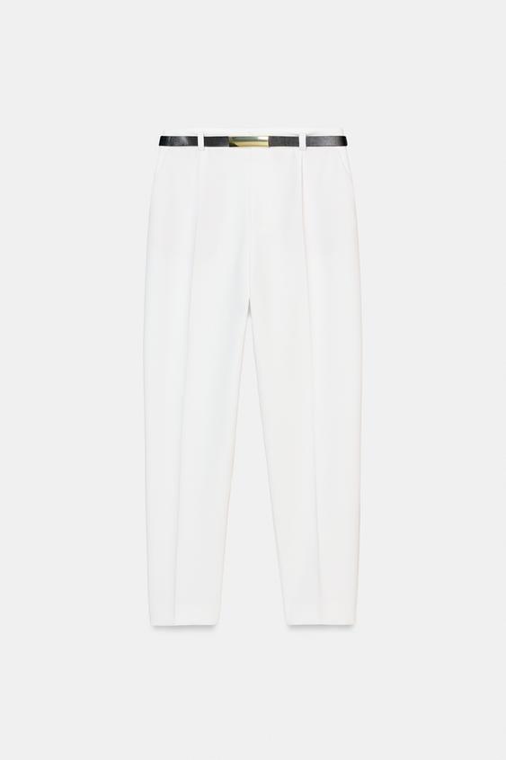 ZARA ПРЯМЫЕ БРЮКИ С ПОЯСОМ, ЭКРЮ