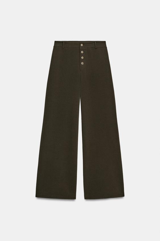 ZARA ПРЯМЫЕ БРЮКИ С ПУГОВИЦАМИ, ТЕМНО-КОРИЧНЕВЫЙ