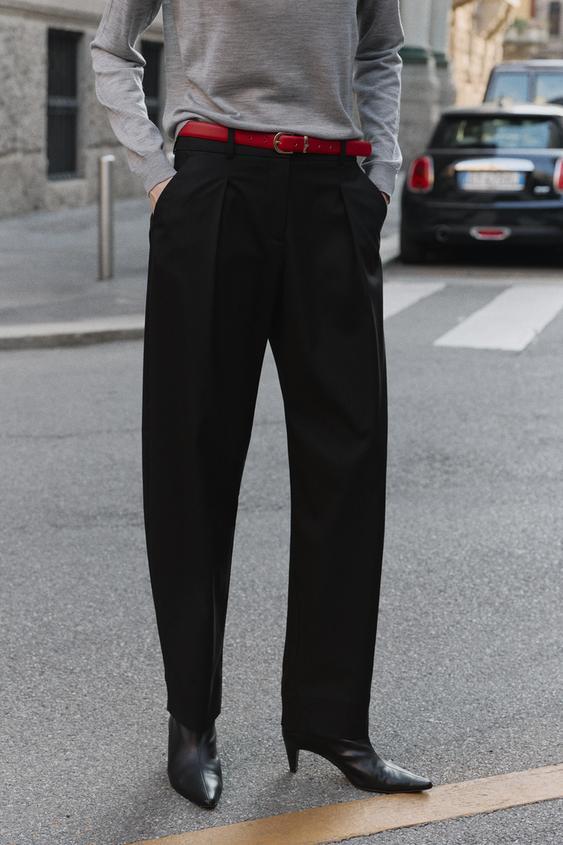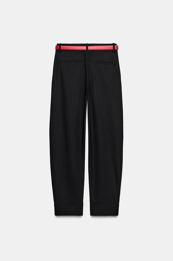 ZARA ПРЯМЫЕ БРЮКИ С РЕМНЕМ, ЧЕРНЫЙ