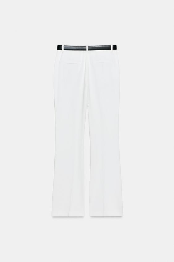 ZARA ПРЯМЫЕ БРЮКИ С РЕМНЕМ, ЭКРЮ