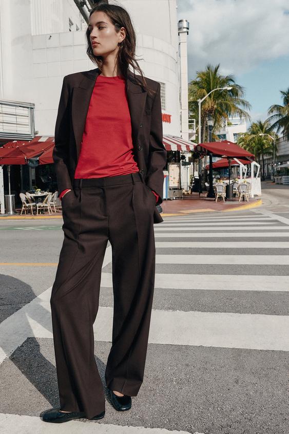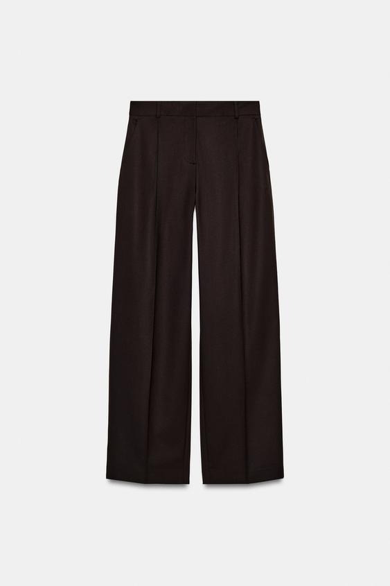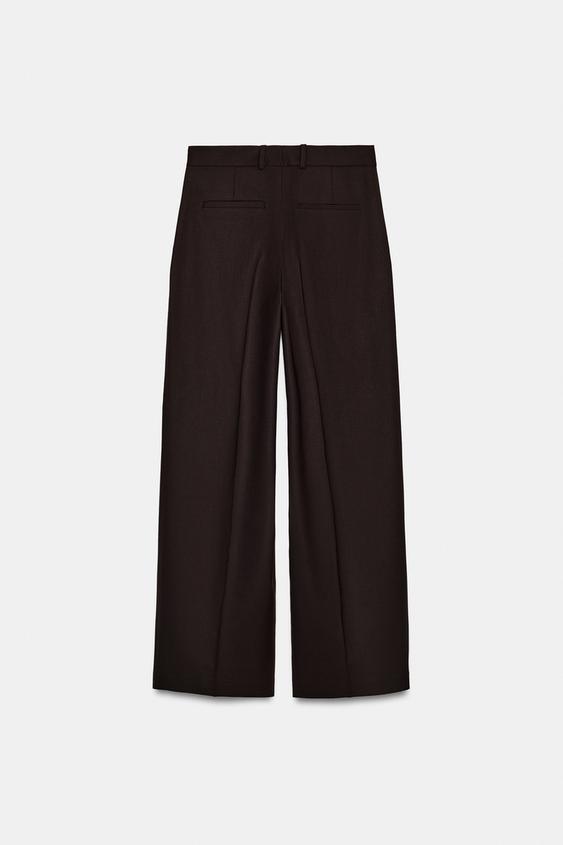 ZARA ПРЯМЫЕ БРЮКИ С ЗАЩИПАМИ, КОРИЧНЕВЫЙ