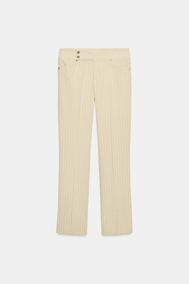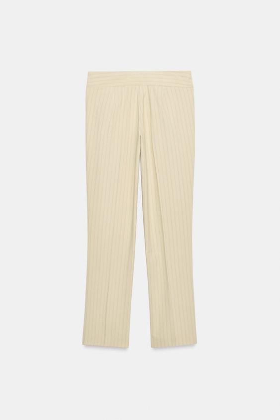 ZARA ПРЯМЫЕ БРЮКИ В ТОНКУЮ ПОЛОСКУ, ПЕСОЧНЫЙ