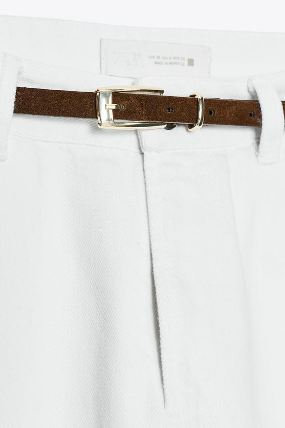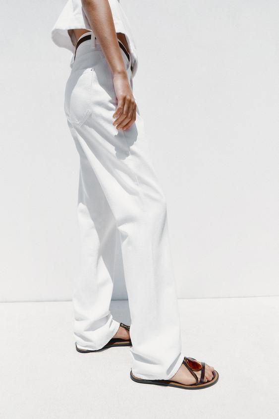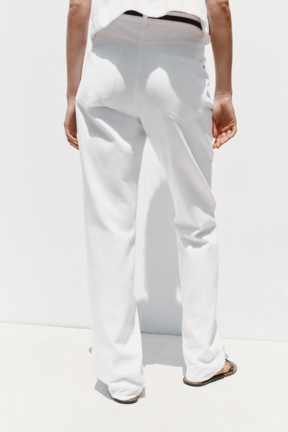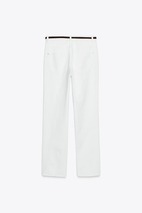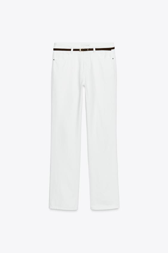 ZARA ПРЯМЫЕ ДЖИНСЫ Z1975 90-Х С ВЫСОКОЙ ПОСАДКОЙ И РЕМНЕМ, БЕЛЫЙ