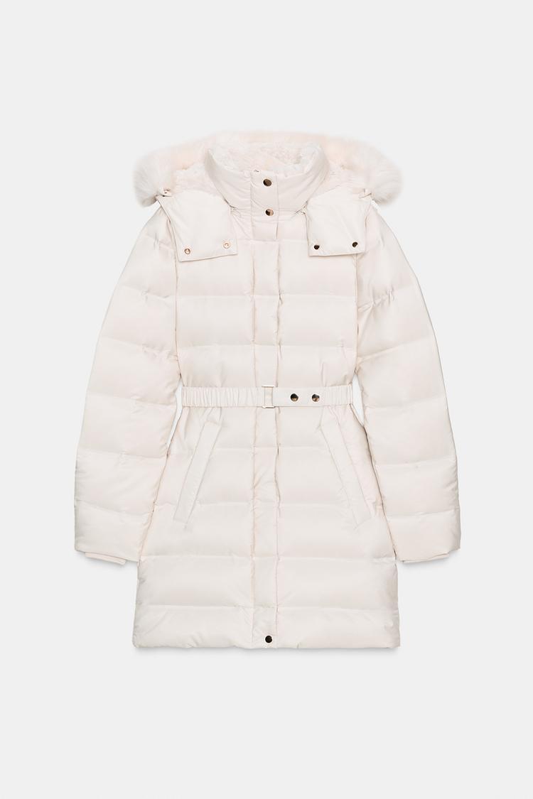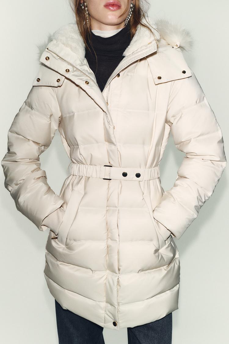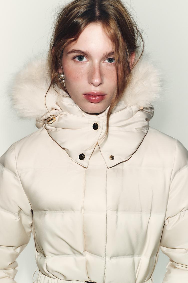 ZARA ПУХОВИК С КАПЮШОНОМ WATER REPELLENT WINDPROOF, ЭКРЮ