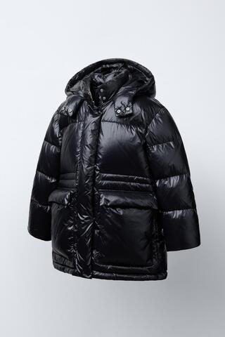 ZARA ПУХОВИК С НАПОЛНИТЕЛЕМ ИЗ ПЕРА И ПУХА WATER REPELLENT, ЧЕРНЫЙ