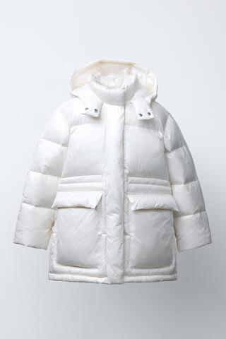ZARA ПУХОВИК С НАПОЛНИТЕЛЕМ ИЗ ПЕРА И ПУХА WATER REPELLENT, ЭКРЮ