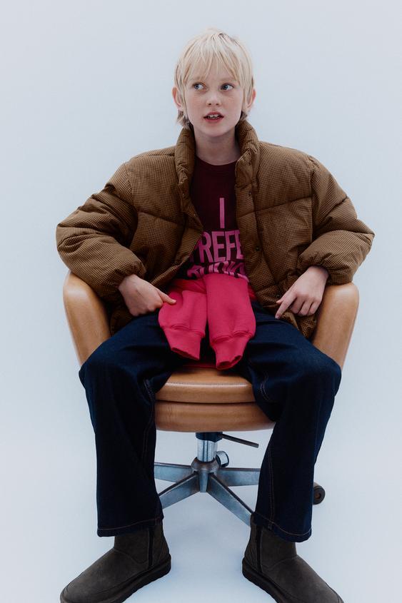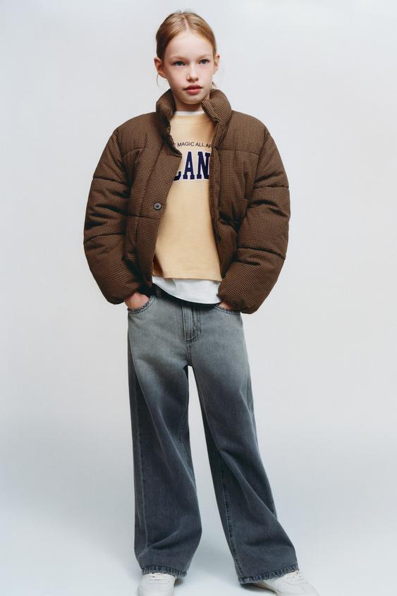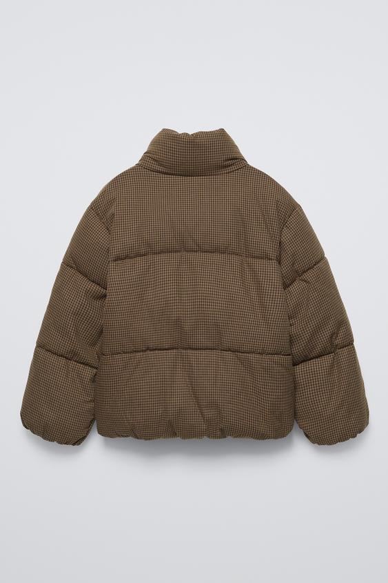 ZARA ПУХОВИК В КЛЕТКУ ВИШИ, КОРИЧНЕВЫЙ