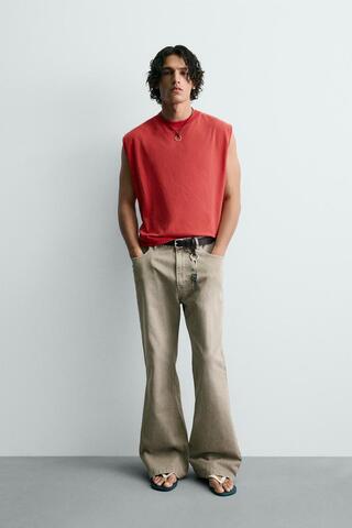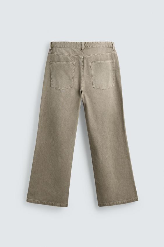 ZARA РАСКЛЕШЕННЫЕ БРЮКИ ИЗ ХЛОПКА, БЕЖЕВЫЙ