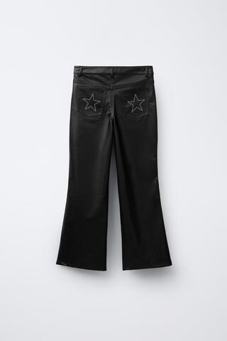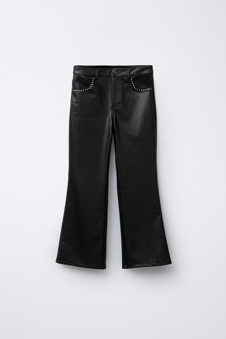 ZARA РАСКЛЕШЕННЫЕ БРЮКИ ИЗ ИСКУССТВЕННОЙ КОЖИ С ЗАКЛЕПКАМИ, ЧЕРНЫЙ