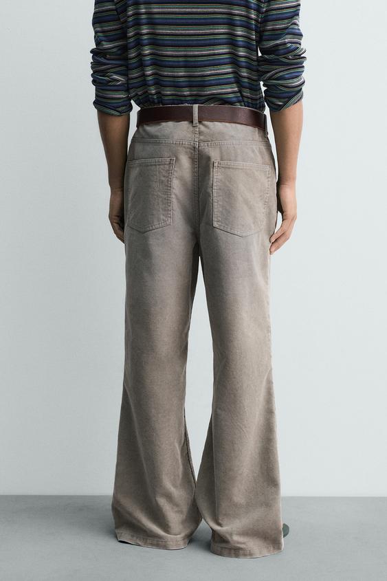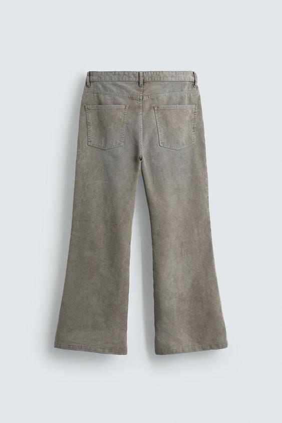 ZARA РАСКЛЕШЕННЫЕ БРЮКИ ИЗ ВЕЛЬВЕТА - LIMITED EDITION, СВЕТЛО-СЕРЫЙ