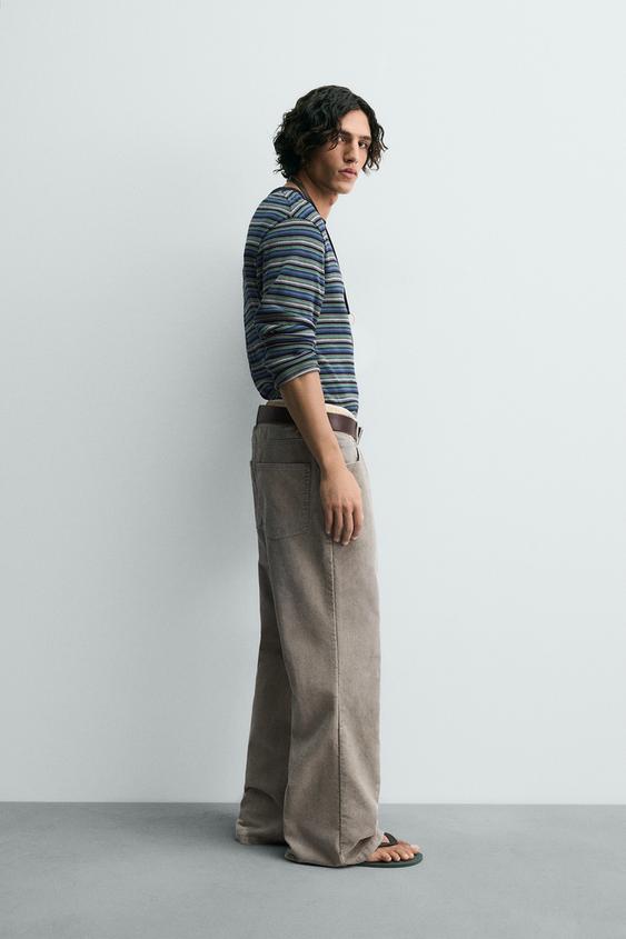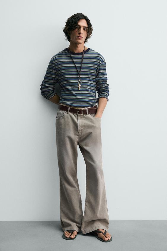Расклешенные брюки из хлопкового вельвета. Пять карманов. Эффект кислотной стирки. Застежка-молния и пуговица спереди.