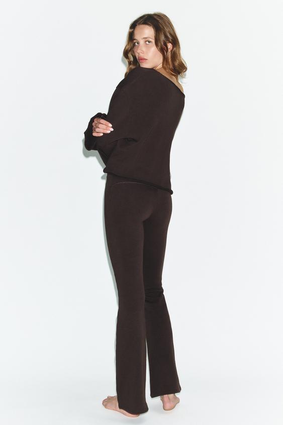 ZARA РАСКЛЕШЕННЫЕ БРЮКИ С ЭФФЕКТОМ ПОТЕРТОСТИ, КОРИЧНЕВЫЙ