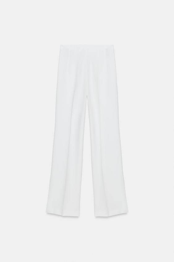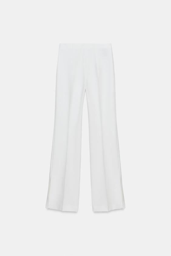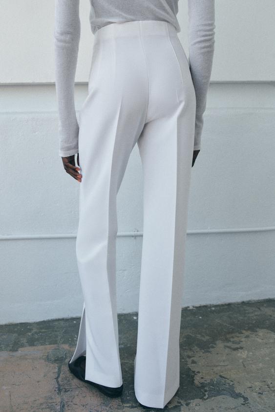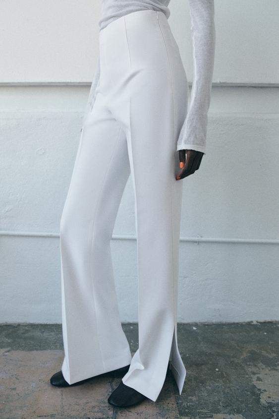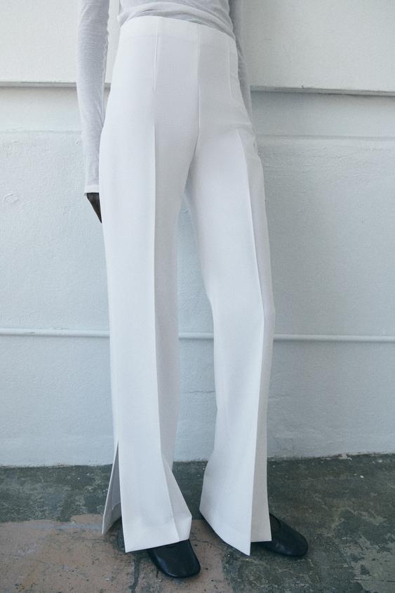 ZARA РАСКЛЕШЕННЫЕ БРЮКИ С РАЗРЕЗАМИ ZW COLLECTION, БЕЛЫЙ