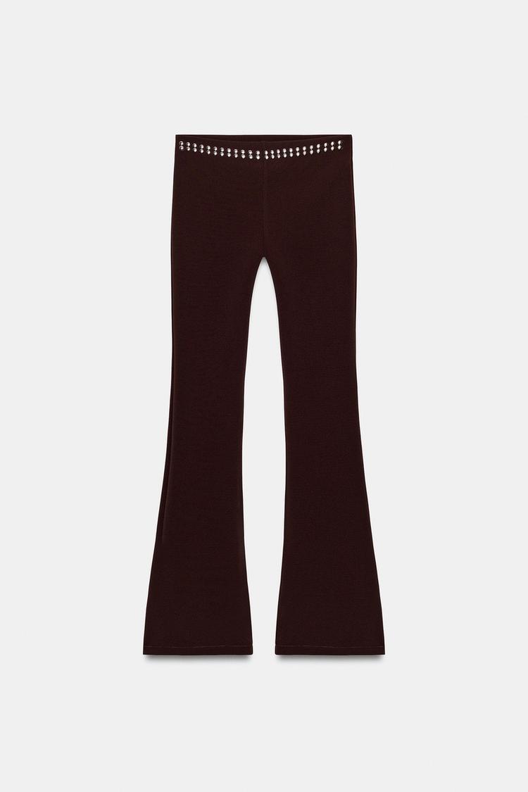ZARA РАСКЛЕШЕННЫЕ БРЮКИ С ЗАКЛЕПКАМИ, ТЕМНО-КОРИЧНЕВЫЙ