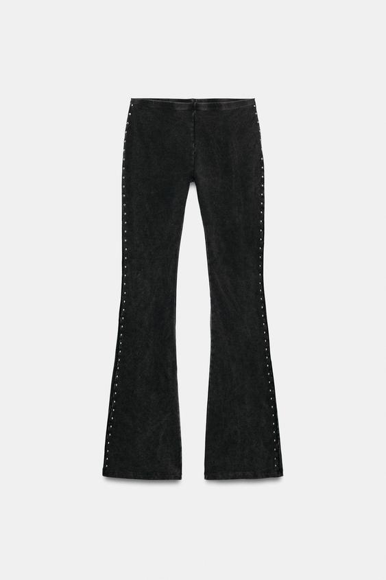 ZARA РАСКЛЕШЕННЫЕ БРЮКИ С ЗАКЛЕПКАМИ, УГОЛЬНЫЙ