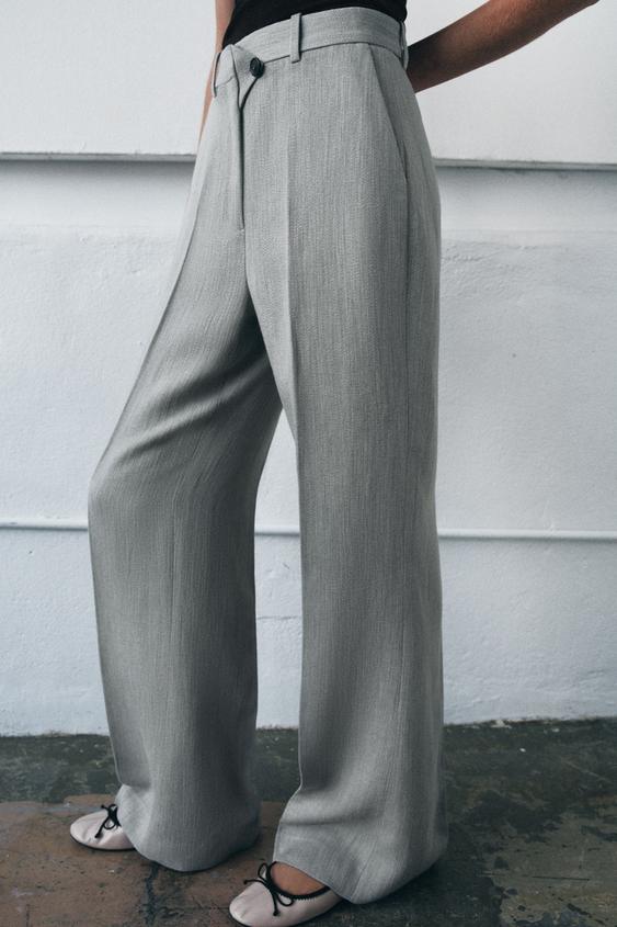 ZARA РАСКЛЕШЕННЫЕ БРЮКИ СТРУКТУРНЫЕ ZW COLLECTION, СЕРЫЙ