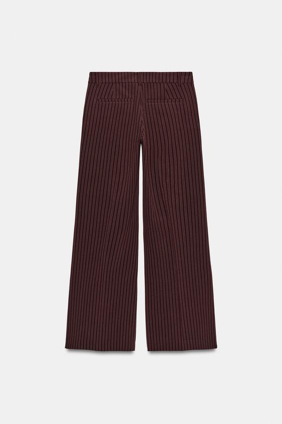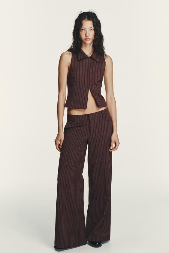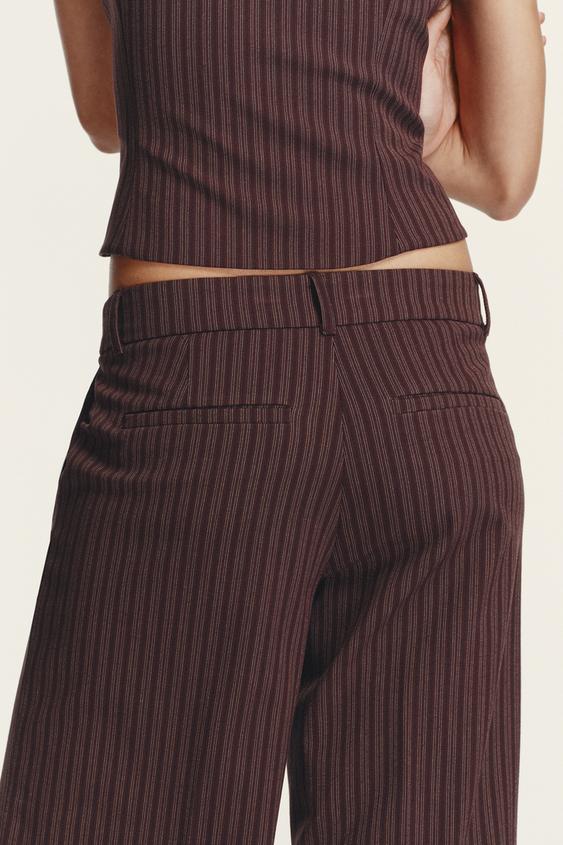 ZARA РАСКЛЕШЕННЫЕ БРЮКИ В ПОЛОСКУ С НИЗКОЙ ПОСАДКОЙ, КОРИЧНЕВЫЙ/ЭКРЮ