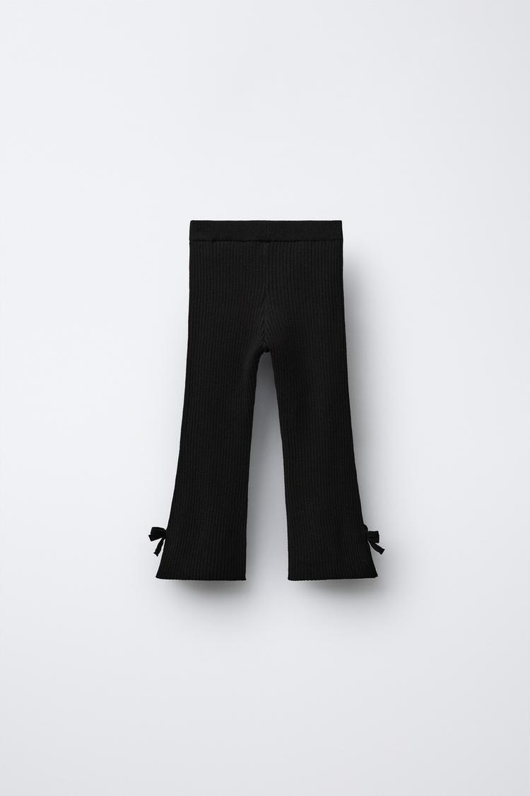 ZARA РАСКЛЕШЕННЫЕ ТРИКОТАЖНЫЕ ЛЕГИНСЫ С БАНТИКАМИ, ЧЕРНЫЙ