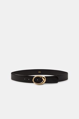 ZARA РЕМЕНЬ ИЗ 100% КОЖИ С ОВАЛЬНОЙ ПРЯЖКОЙ, КОРИЧНЕВЫЙ