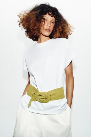 ZARA РЕМЕНЬ ИЗ 100% ЗАМШИ С ОБТЯНУТОЙ ПРЯЖКОЙ, ЛАЙМОВЫЙ