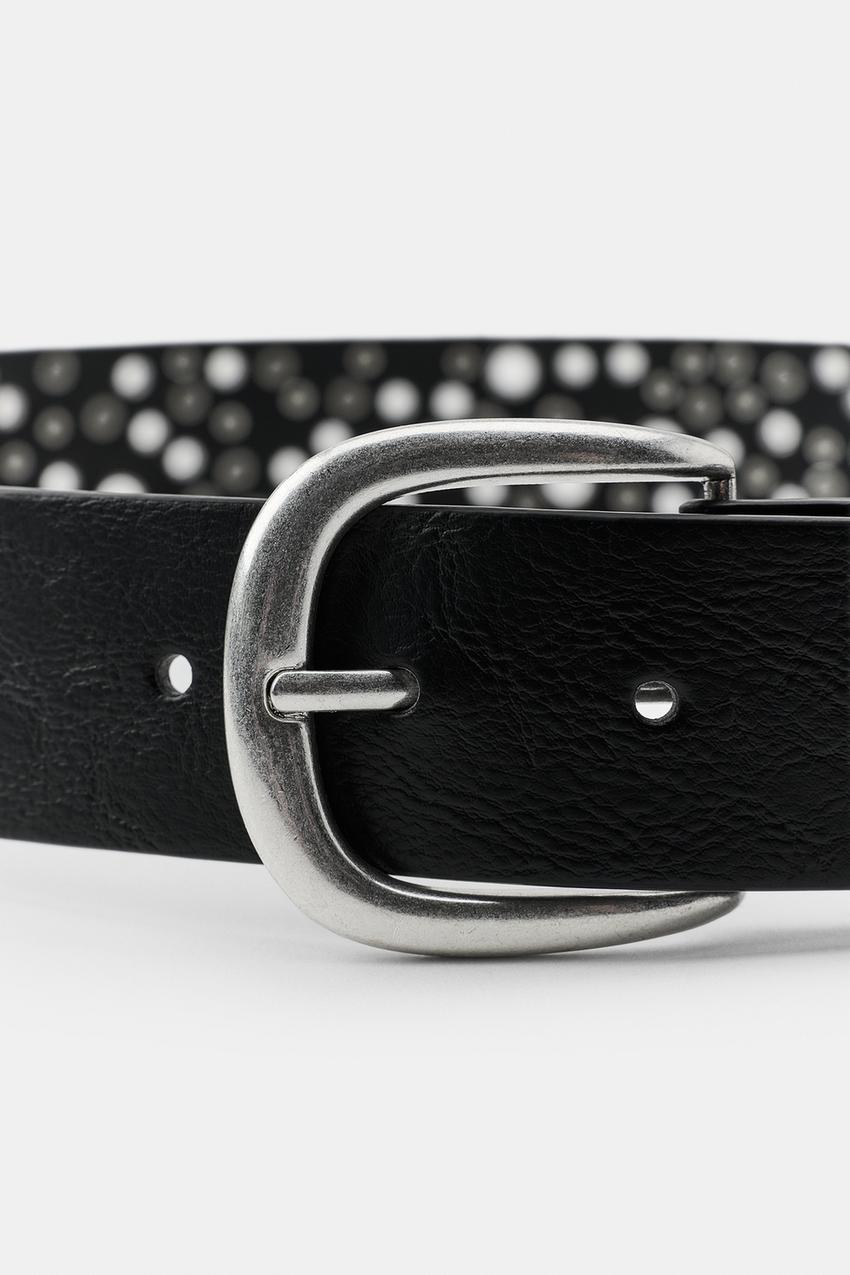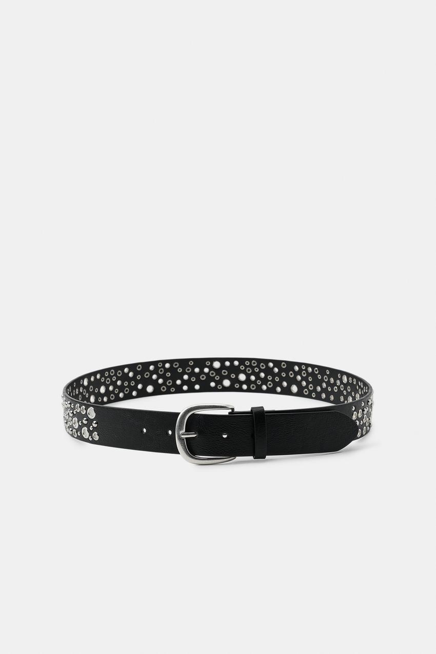 ZARA РЕМЕНЬ ИЗ ИСКУССТВЕННОЙ КОЖИ С ПЕРФОРАЦИЕЙ И ЗАКЛЕПКАМИ, ЧЕРНЫЙ