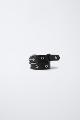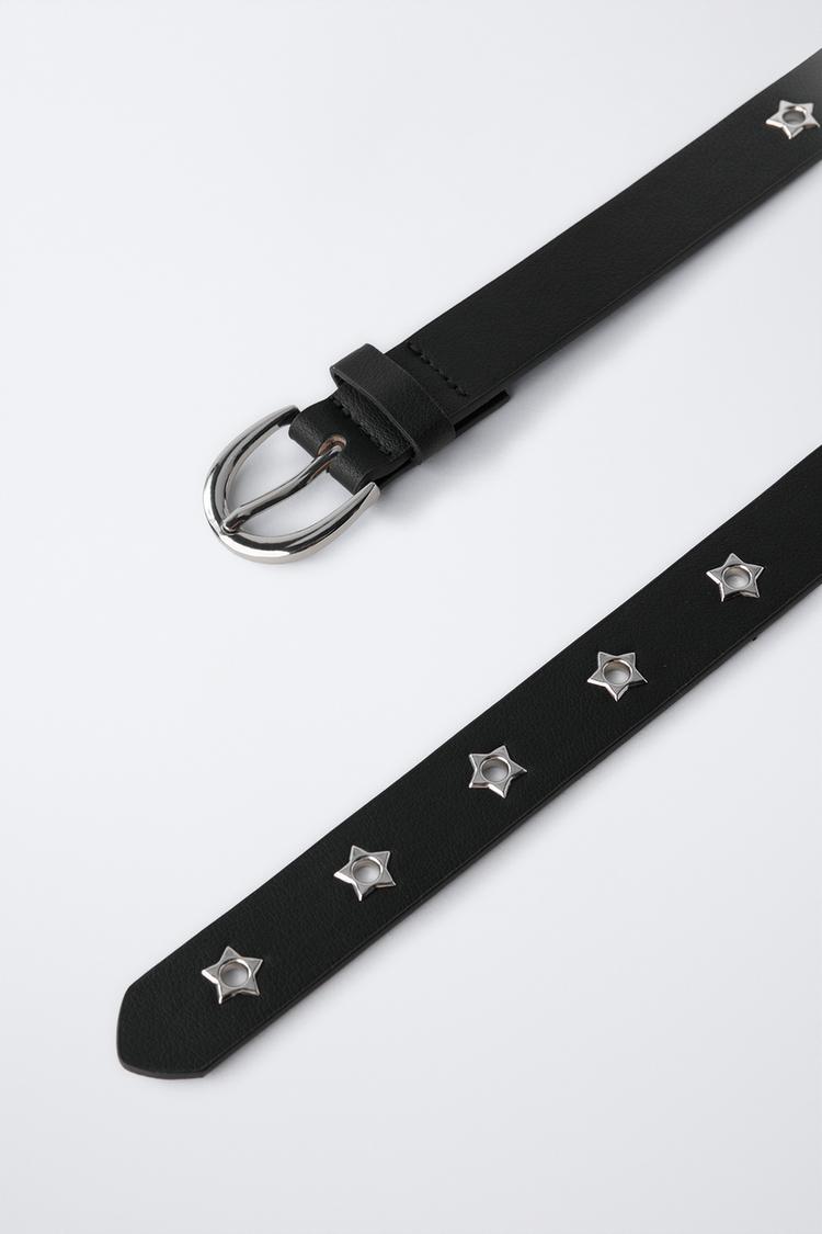 ZARA РЕМЕНЬ ИЗ ИСКУССТВЕННОЙ КОЖИ СО ЗВЕЗДНЫМИ ЛЮВЕРСАМИ, ЧЕРНЫЙ