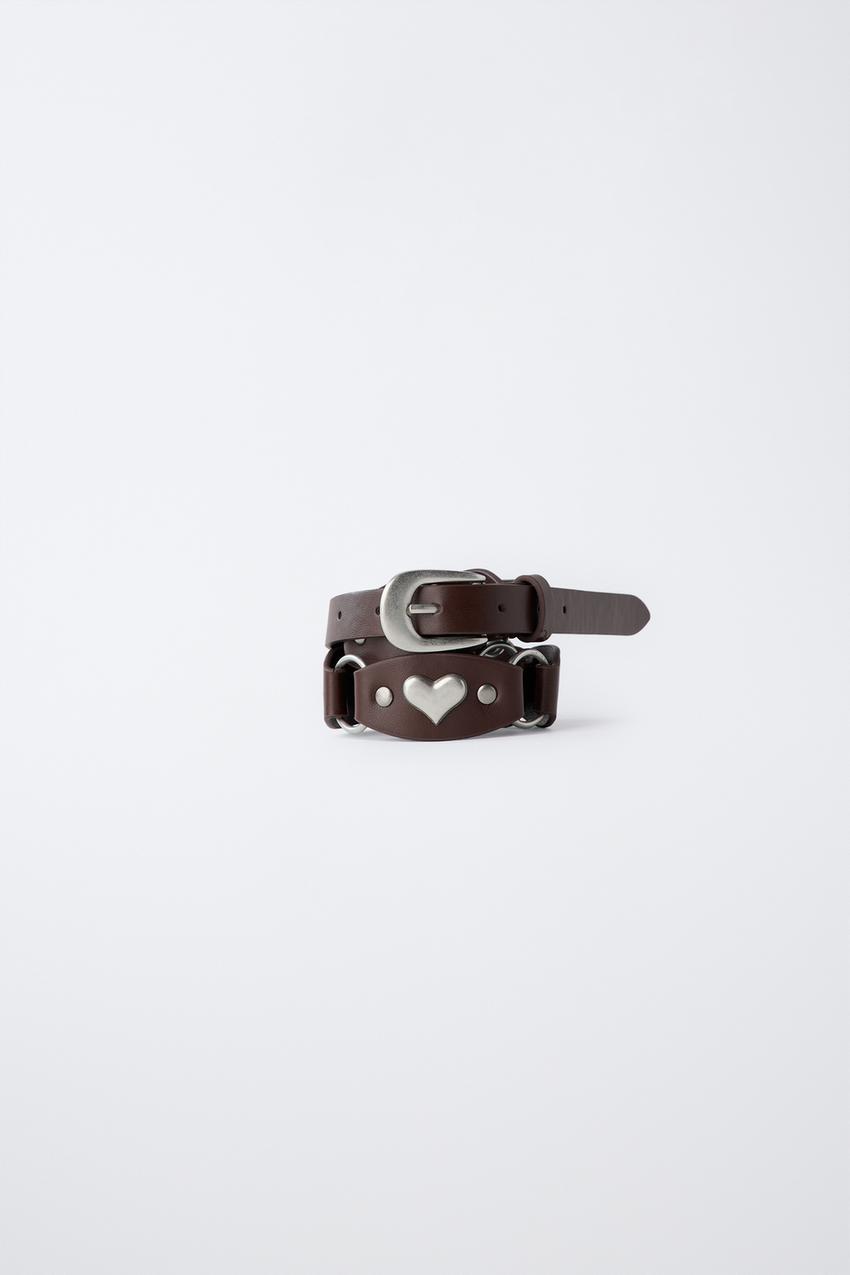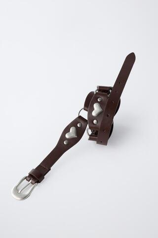 ZARA РЕМЕНЬ С АППЛИКАЦИЕЙ «СЕРДЕЧКИ», КОРИЧНЕВЫЙ
