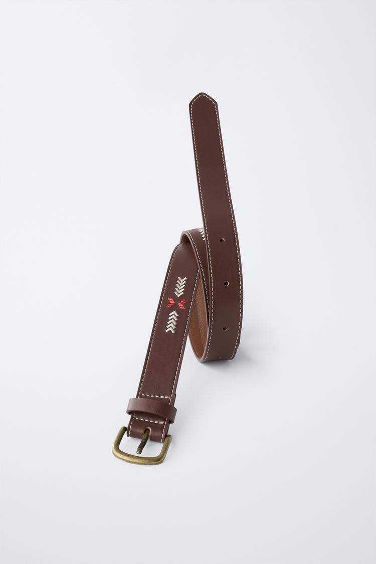 ZARA РЕМЕНЬ С ВЫШИВКОЙ, КОРИЧНЕВЫЙ