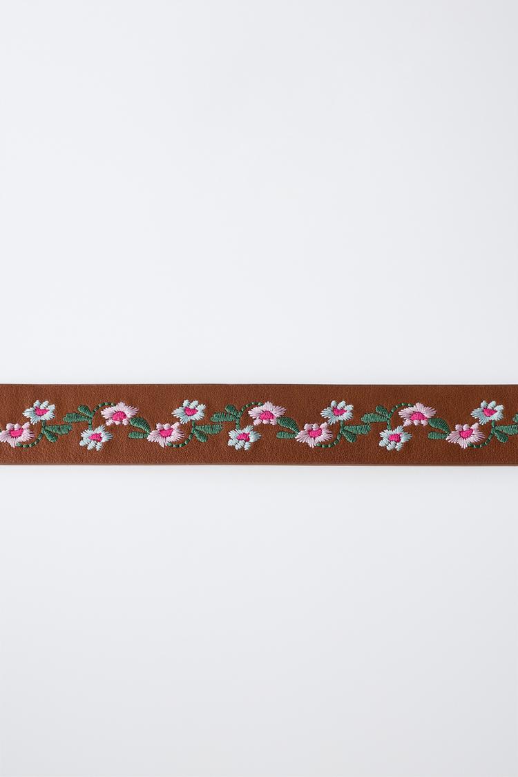 ZARA РЕМЕНЬ С ВЫШИВКОЙ В ВИДЕ ЦВЕТОВ, КОРИЧНЕВЫЙ