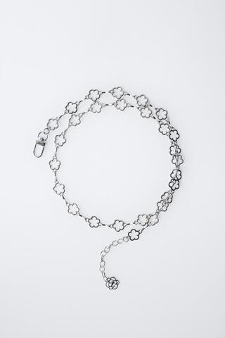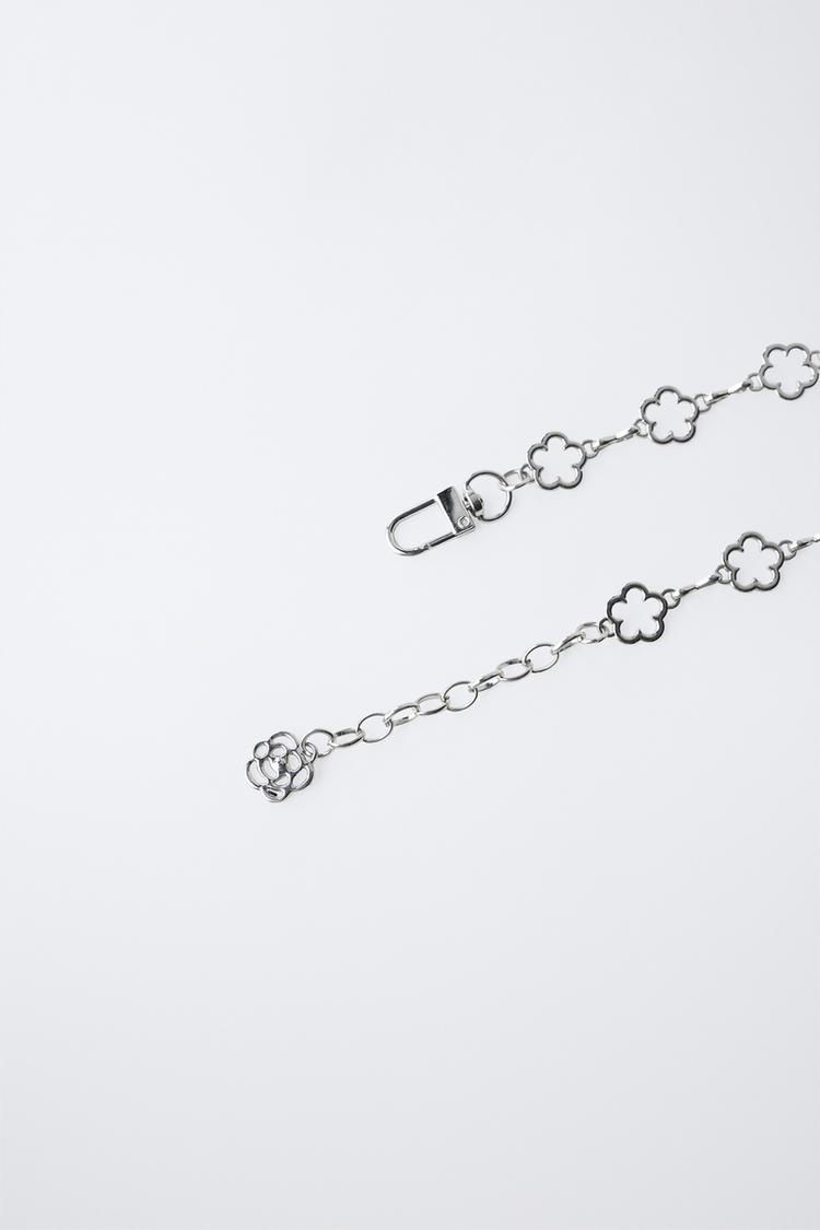 ZARA РЕМЕНЬ-ЦЕПОЧКА С ЦВЕТАМИ, СЕРЕБРИСТЫЙ