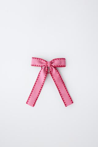 ZARA РЕЗИНКА ДЛЯ ВОЛОС С КОНТРАСТНЫМ БАНТОМ, РОЗОВЫЙ
