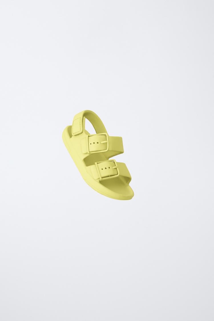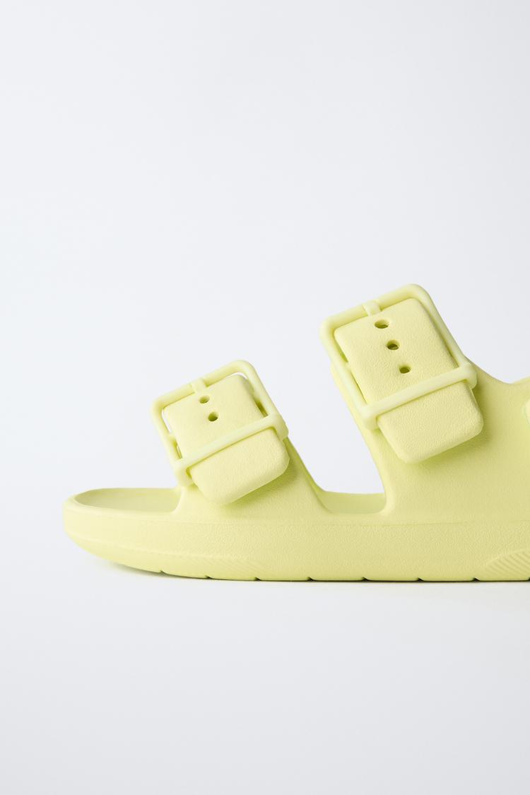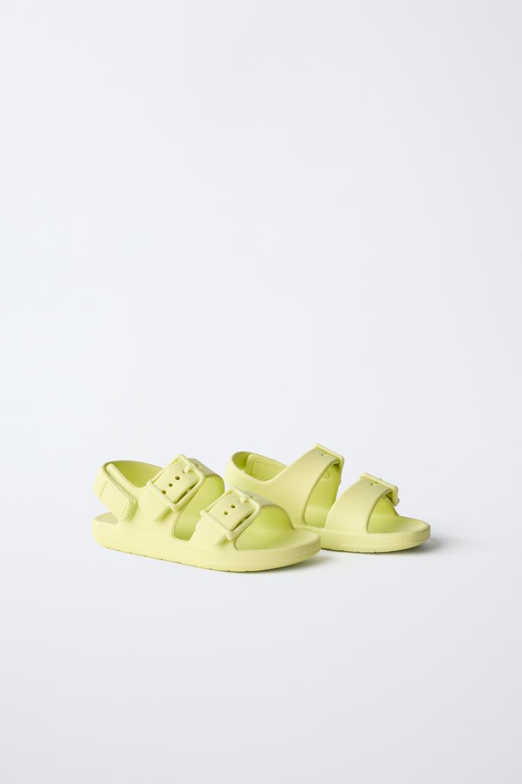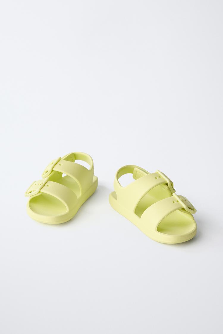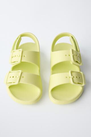 ZARA РЕЗИНОВЫЕ САНДАЛИИ С ПРЯЖКАМИ, ЛАЙМОВЫЙ