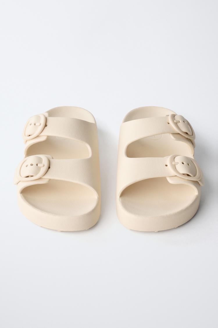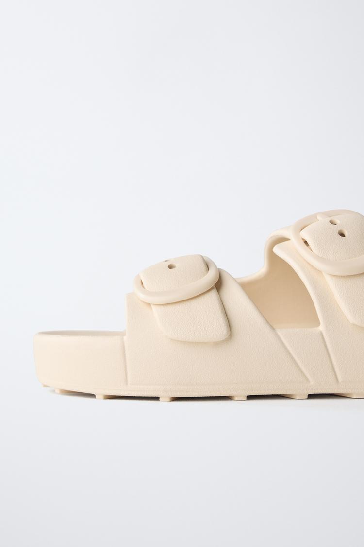 ZARA РЕЗИНОВЫЕ ТАПОЧКИ С ПРЯЖКАМИ, ЭКРЮ