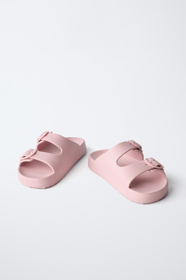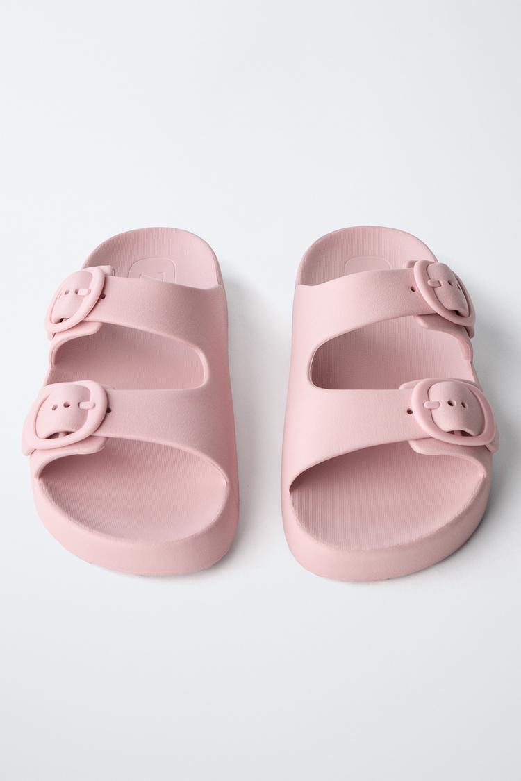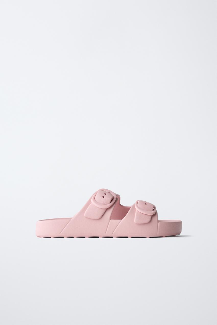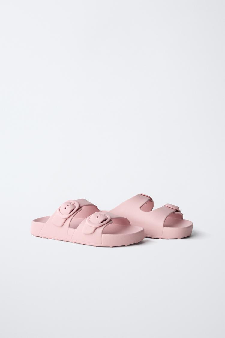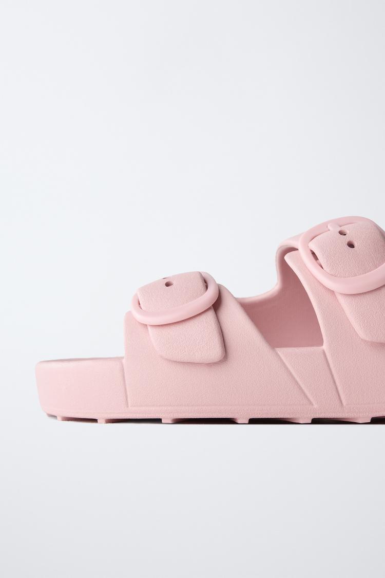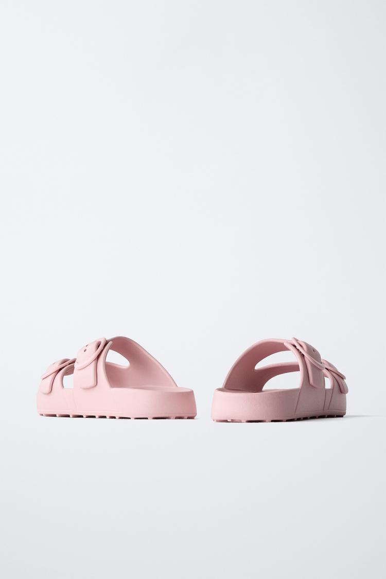 ZARA РЕЗИНОВЫЕ ТАПОЧКИ С ПРЯЖКАМИ, РОЗОВЫЙ
