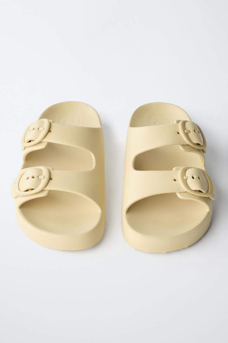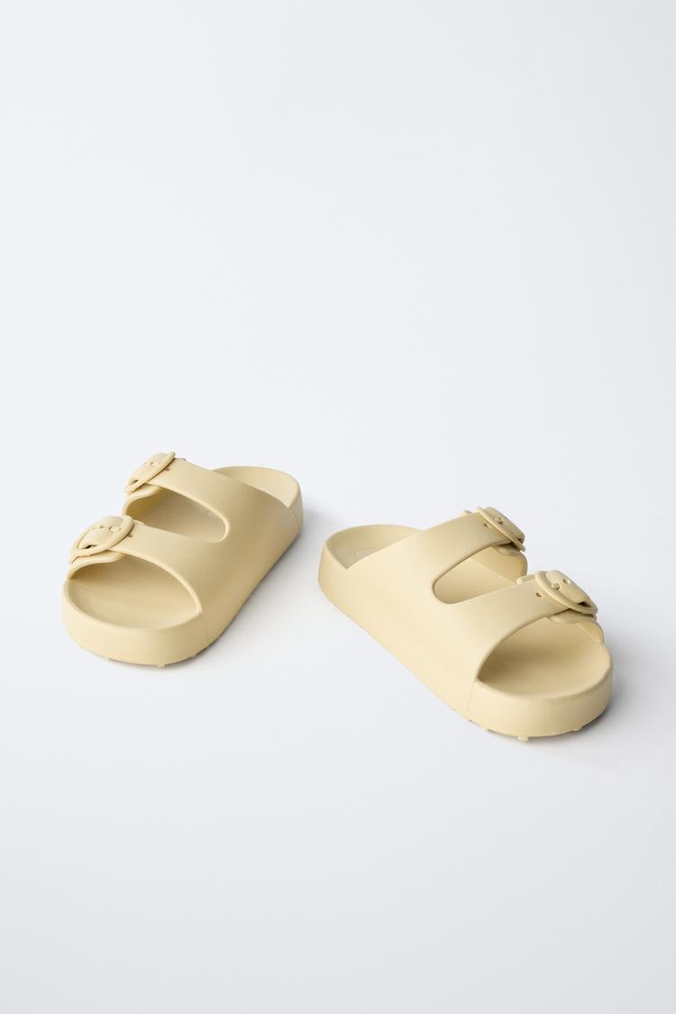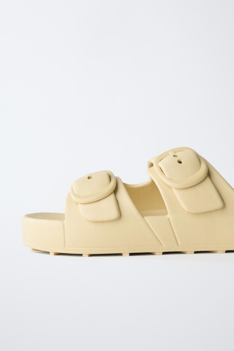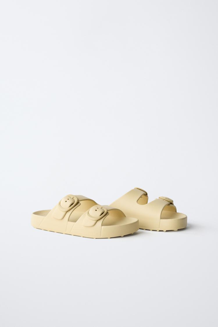 ZARA РЕЗИНОВЫЕ ТАПОЧКИ С ПРЯЖКАМИ, ЖЕЛТЫЙ