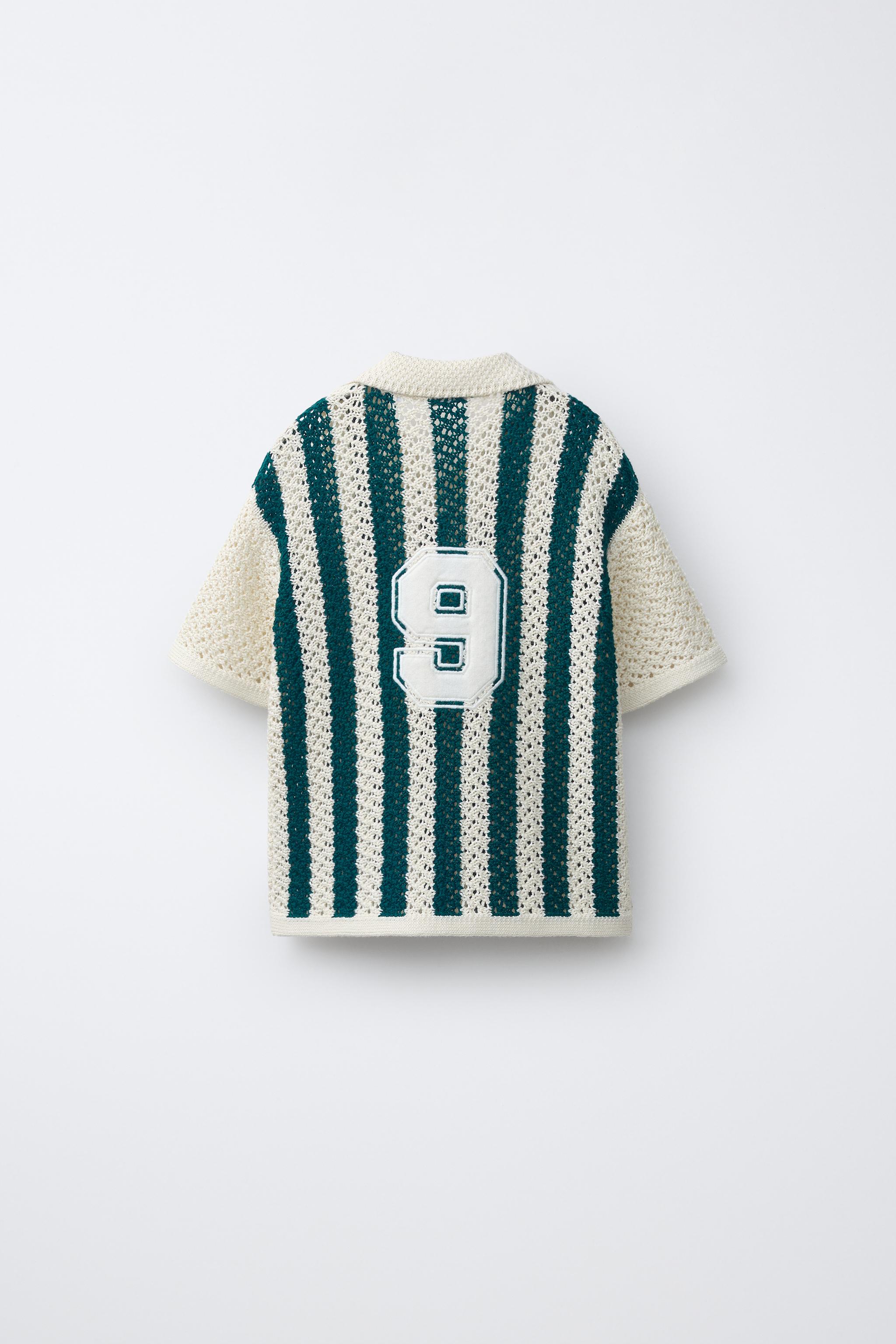 ZARA ТРИКОТАЖНОЕ ПОЛО В ПОЛОСКУ, ЭКРЮ/СИНИЙ