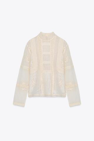 ZARA РОМАНТИЧНАЯ БЛУЗА С КРУЖЕВОМ — ZW COLLECTION, ЭКРЮ