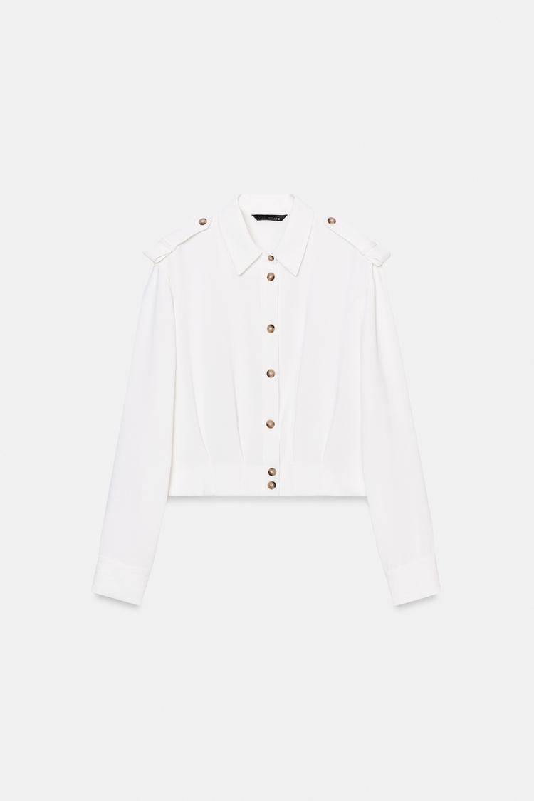 ZARA РУБАШКА C ХЛЯСТИКАМИ НА ПЛЕЧАХ, ЖЕЛТОВАТО-БЕЛЫЙ