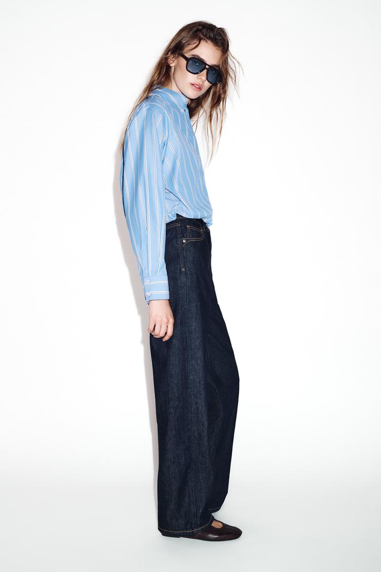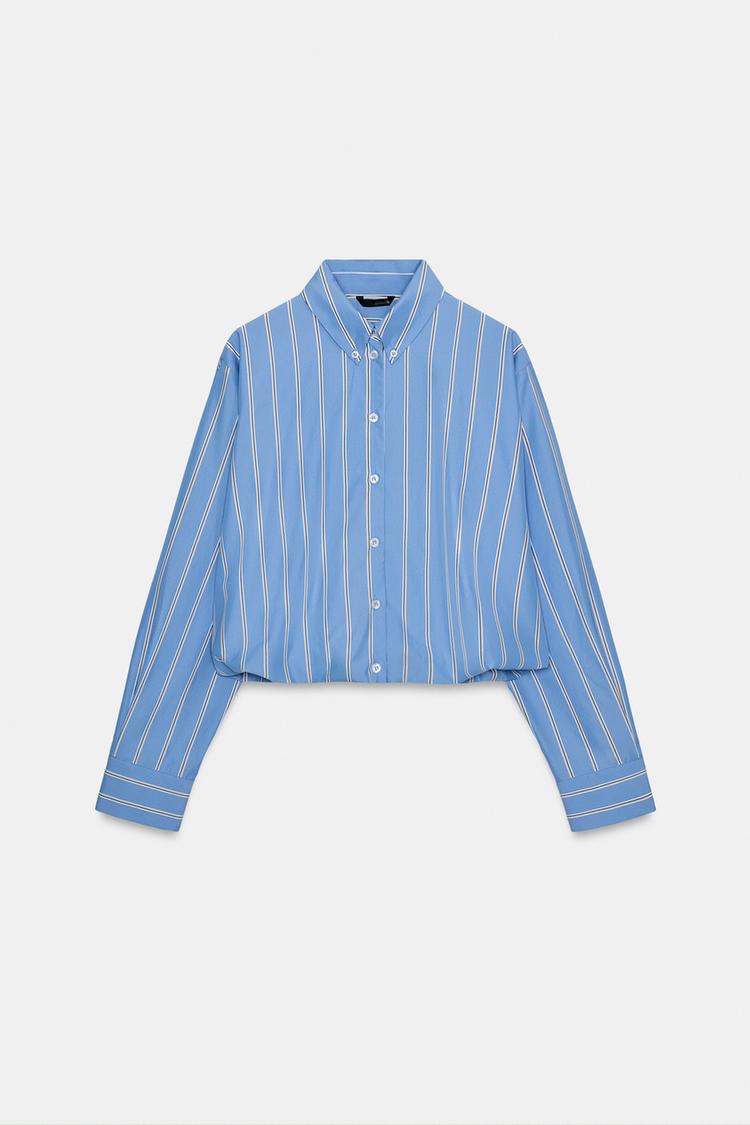 ZARA РУБАШКА GLOBO В ПОЛОСКУ, СИНИЙ/БЕЛЫЙ