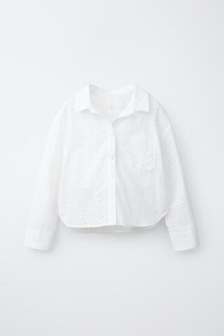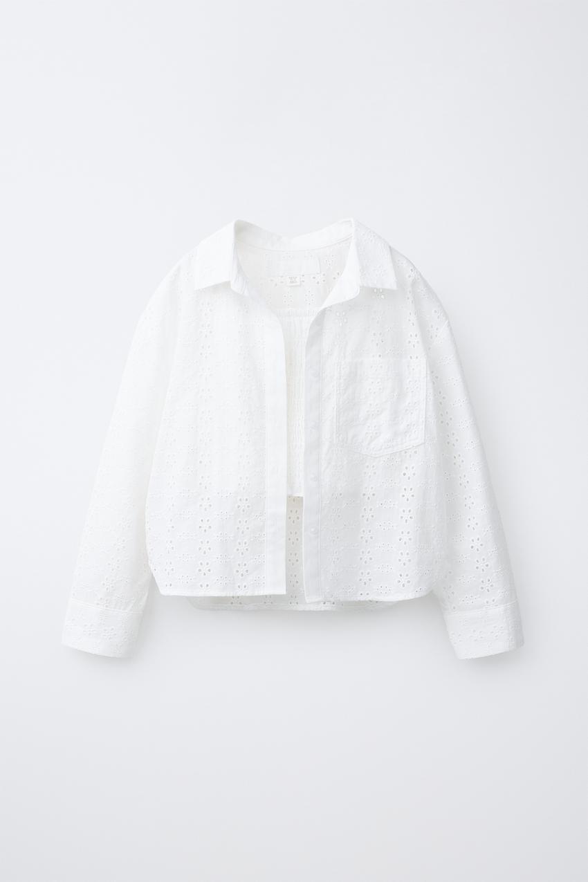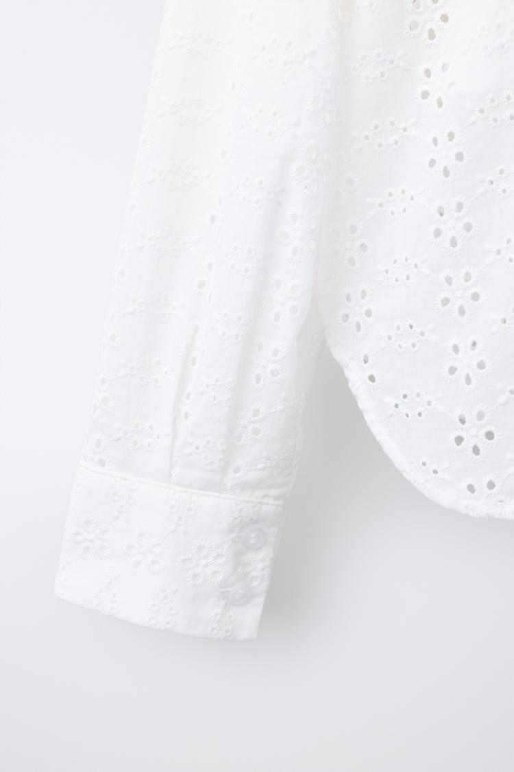 ZARA РУБАШКА И ТОП С ВЫШИВКОЙ ШИФФЛИ, ЖЕЛТОВАТО-БЕЛЫЙ