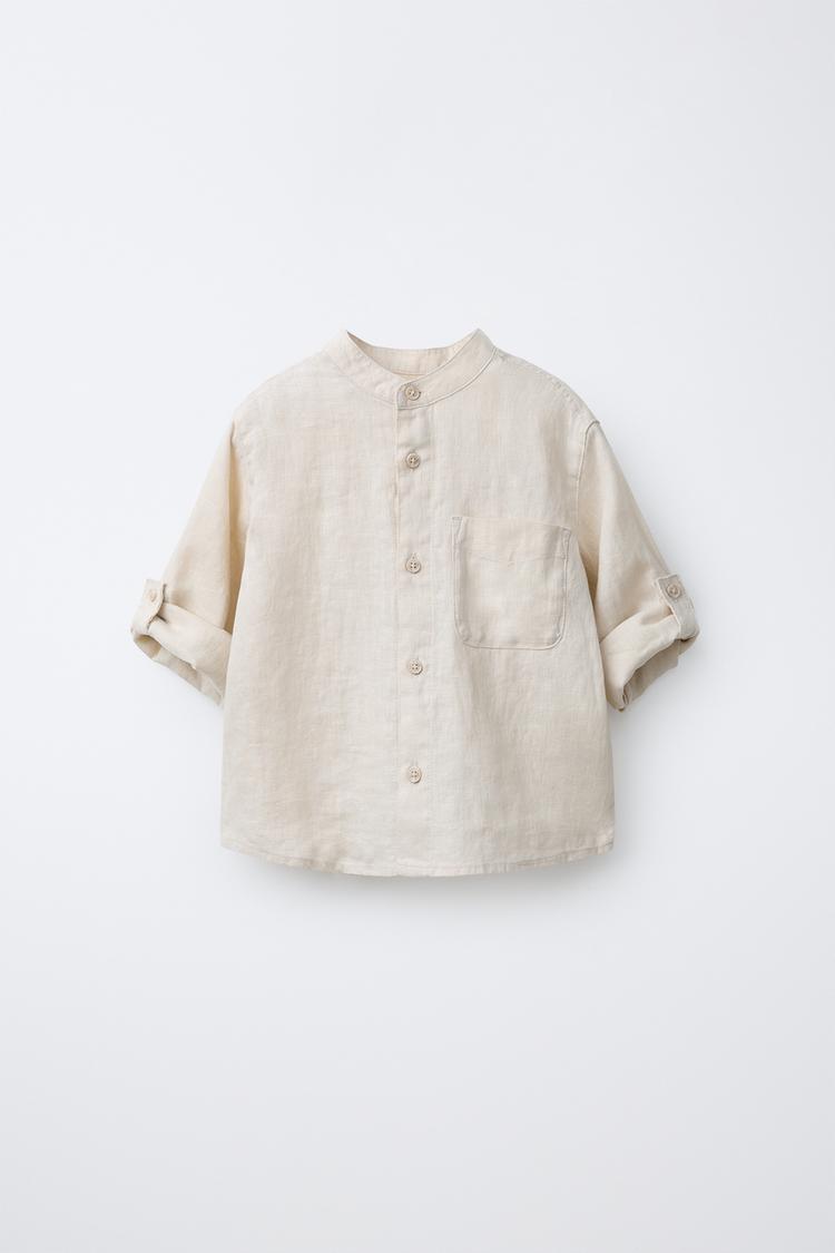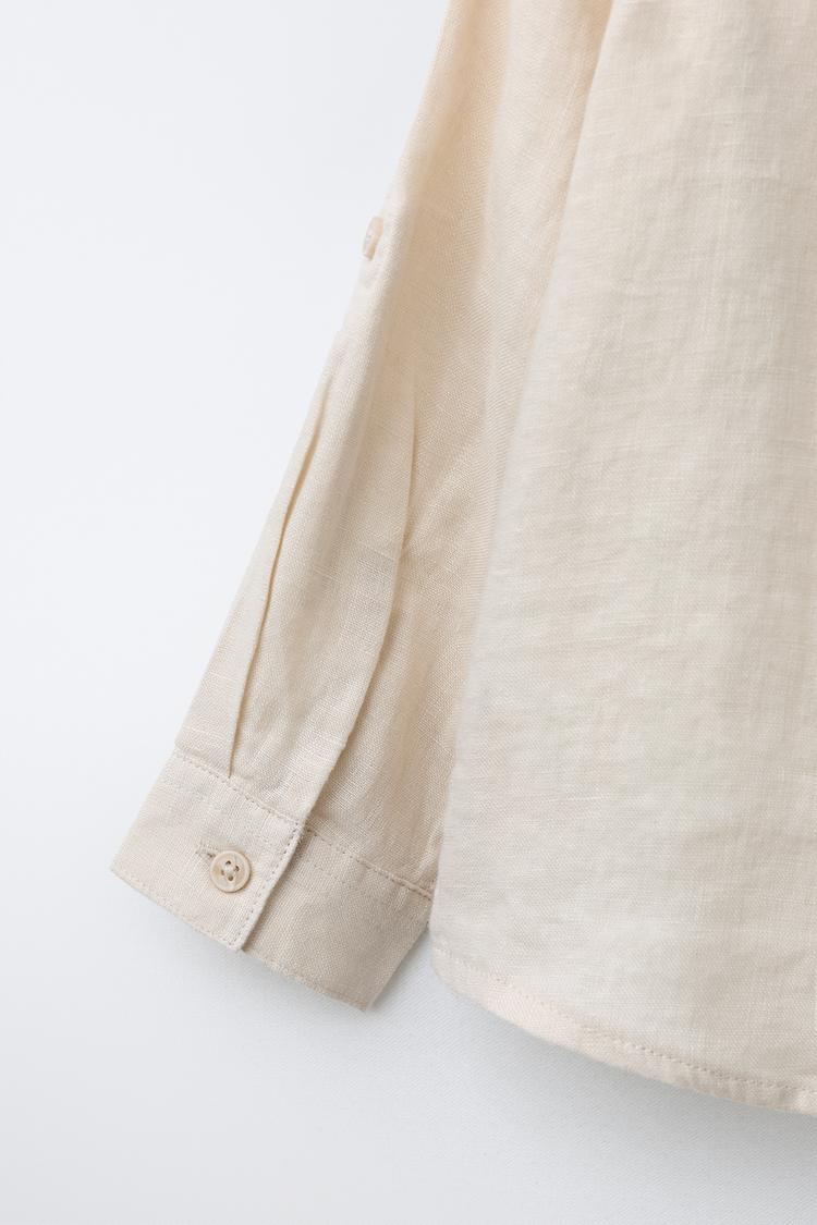 ZARA РУБАШКА ИЗ 100% ЛЬНА, СВЕТЛО-БЕЖЕВЫЙ