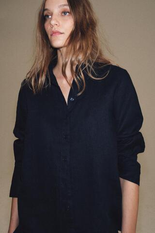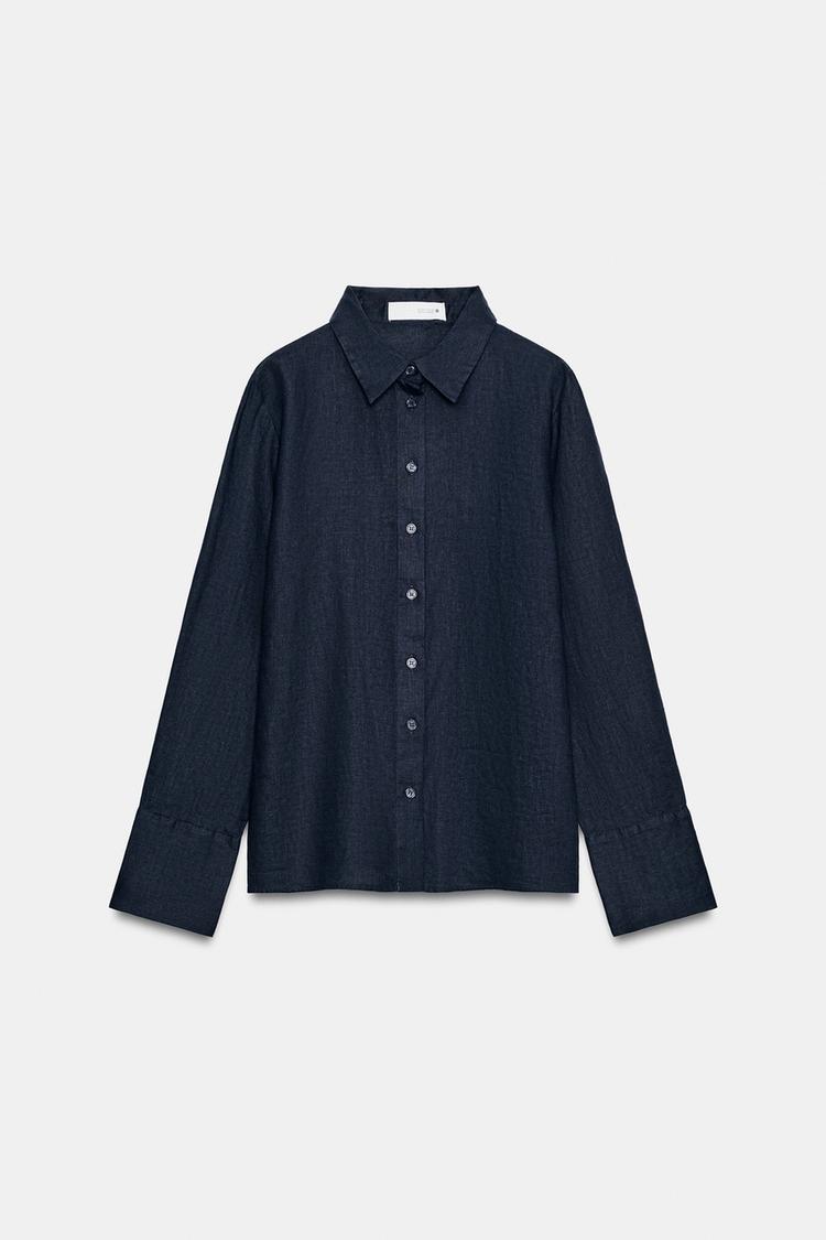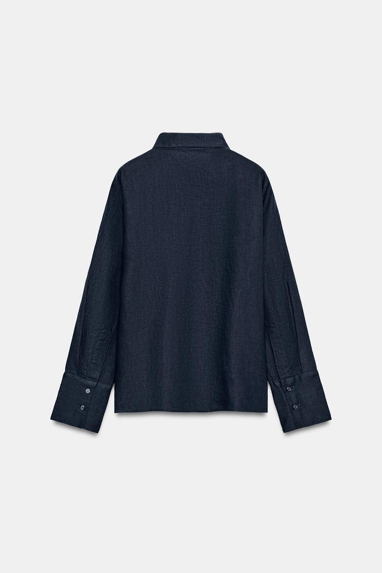 ZARA РУБАШКА ИЗ 100% ЛЬНА — ZW COLLECTION, МОРСКОЙ СИНИЙ