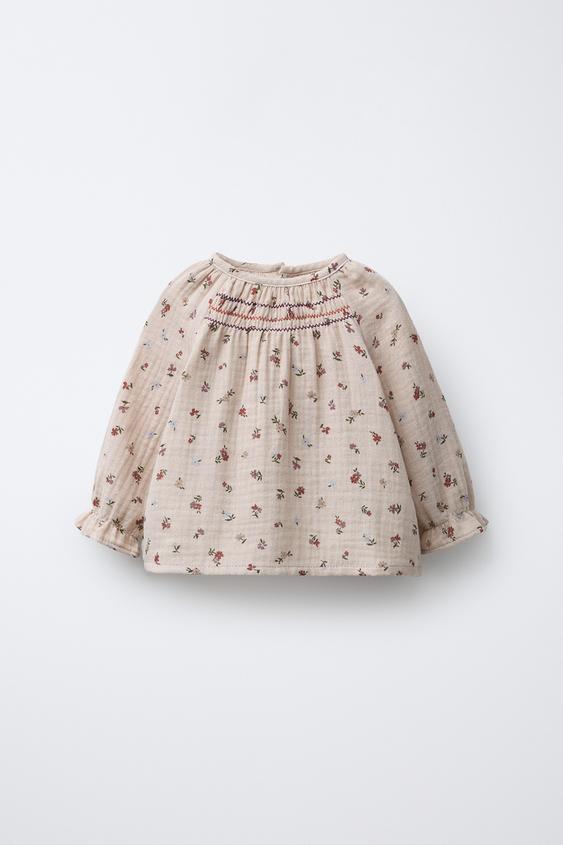 ZARA РУБАШКА ИЗ БАМБУКА С ЦВЕТОЧНЫМ ПРИНТОМ, РЫЖЕВАТО-КОРИЧНЕВЫЙ