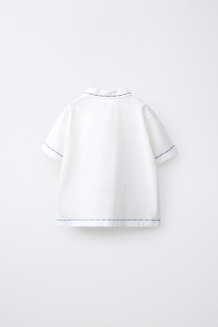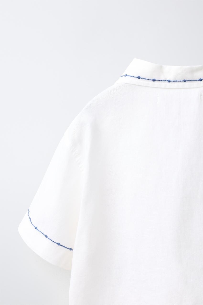 ZARA РУБАШКА ИЗ ХЛОПКА И ЛЬНА С КОНТРАСТНОЙ ВЫШИВКОЙ, ЭКРЮ